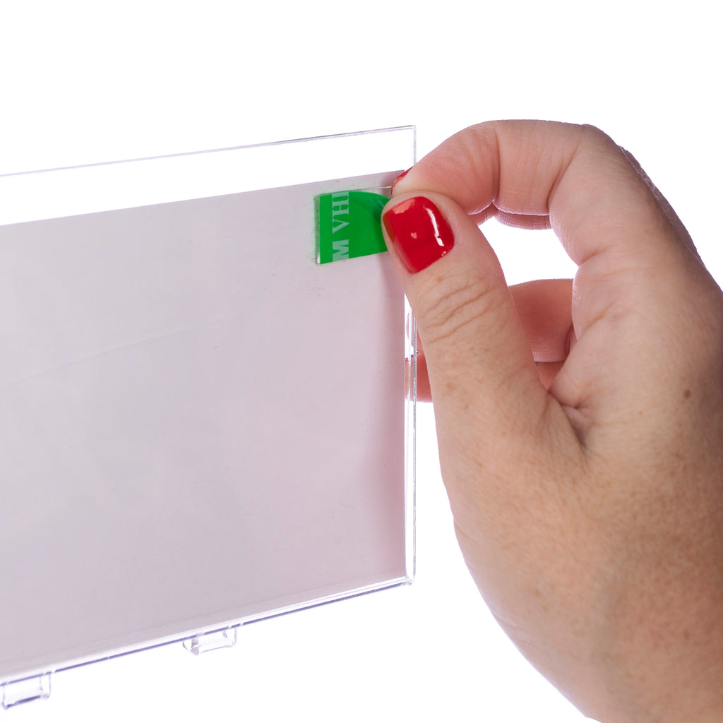 A aplicação na parede é super prática, não exige furação. É feita com a fita dupla face 3M de alta aderência, que já vem aplicada no produto, basta apenas retirar a película protetora. |